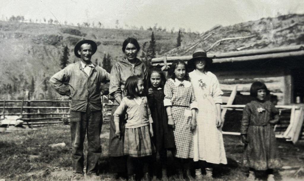 This Horsfall family story is about a couple who ventured to the Yukon for the Klondike gold rush, but took up another life along the rivers of the central Yukon. They had very different heritages and early lives, she a Gwich’in woman of northern Canada and Alaska and he a teacher’s son from Norfolk, England. They fashioned a life together for more than 45 years, including raising nine children on the land, beginning in Alaska and then the Yukon.
