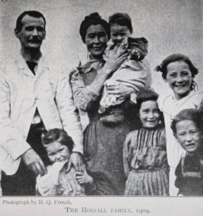 Joseph Horsfall took over the running of the post office at Fort Selkirk In the summer of 1907 and the following year was officially appointed to the position. That same year, in September of 1908, the Horsfalls’ fifth child and only son, Charles, was born at Fort Selkirk and is included in a 1909 photo in Charles Sheldon’s book by H.Q. French. The year-old Charles is shown in his mother’s arms, along with his father and four siblings, likely at Fort Selkirk.