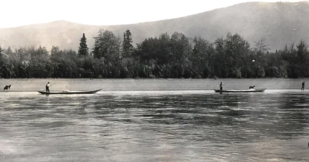 The Horsfalls’ 1905 trip up the Pelly and MacMillan Rivers started from Fort Selkirk and probably took them a couple of weeks. On this trip, they and their provisions were provided a ride on the Vidette as far as the mouth of the MacMillan River. There they were let off to occupy a small cabin that was close to a large eddy, where they were going to net some salmon for the winter before poling on up the MacMillan River to the Kalzas River cabin.