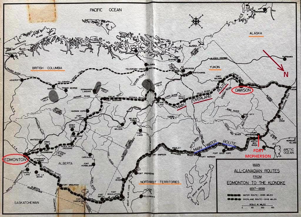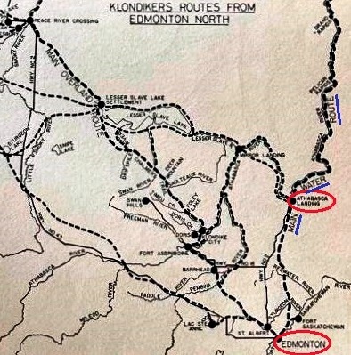 (map on inside front cover of James McGregor’s 1970 book “The Klondike Rush Through Edmonton”)