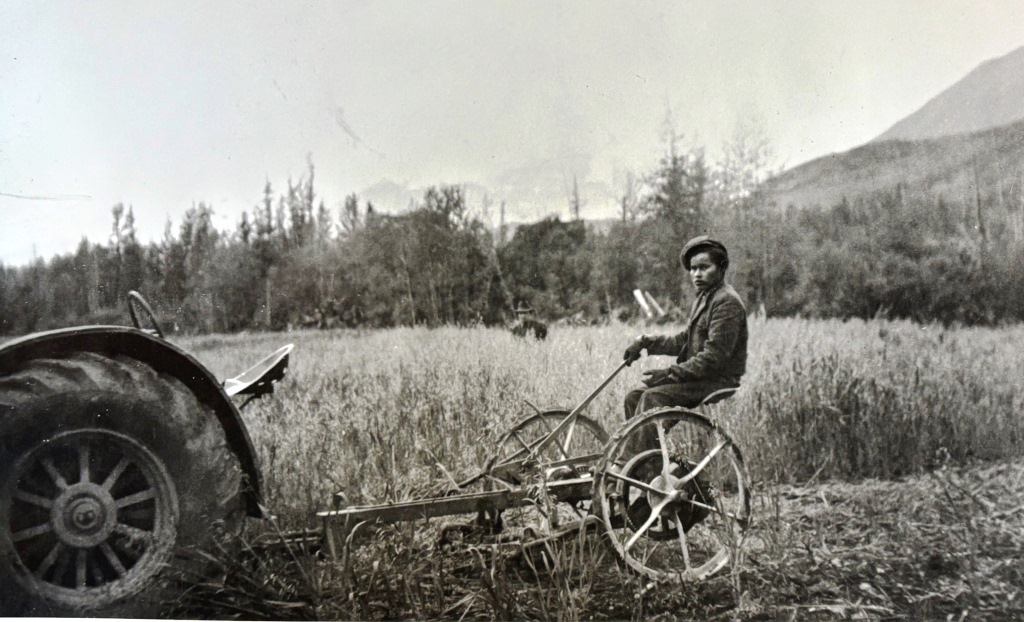 In 1915 Joseph was reported to have seven acres under cultivation at the homestead, five in hay and two in garden produce.  That year he also applied for 25 acres of hay meadow land around two small lakes that came to be known as the Horsfall Lakes, located three miles north of the homestead along the valley of Whip Creek (also the route of the ‘Selkirk Cut-off’ and a mile to the west.  Joseph cut hay from these leased meadows for about eight years, then cancelled it, stating that he by then had enough land under cultivation on the homestead to grow enough livestock feed for his needs. (see link to related Hay meadow article at end)